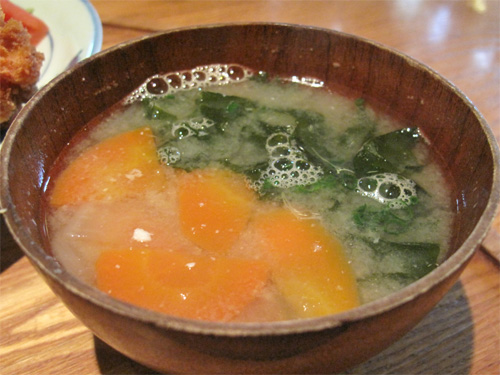 野菜とワカメたっぷりのお味噌汁。