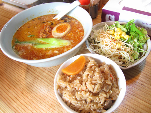 元祖博多担々麺+サラダ+白ご飯で800円ですが、