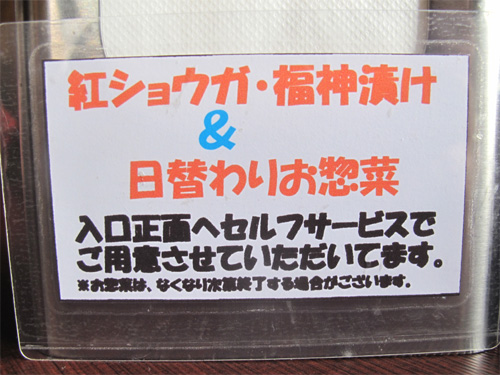 紅しょうが・福神漬け・日替わり惣菜が取り放題♪