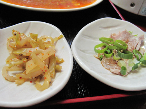 小さなおかずは、ザーサイの細切りとチャーシューの切り落としに