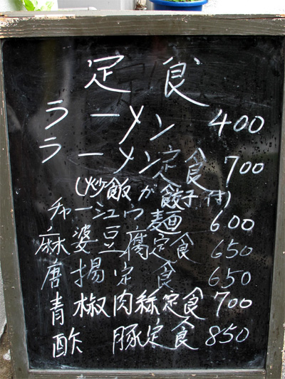 店頭にあった定食メニュー。