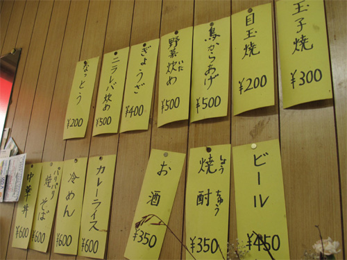 壁面にいっぱい貼ってあるメニュー。