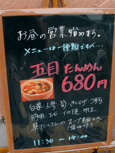 入店時、ランチメニューは五目たんめんしかないコトを念押しして下さる店主。