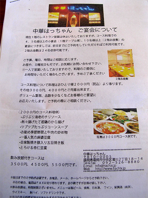 1. 夜は予約のみ。ランチメニューは五目たんめんのみ♪@中華はっちゃん [ 博多女のB級グルメ節。 ] 2012年06月05日 10:32