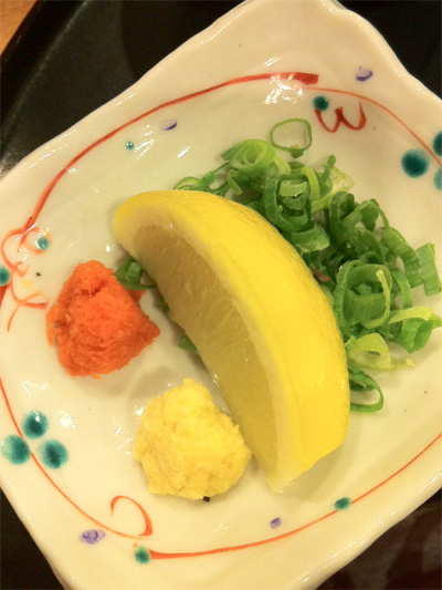 ネギ・レモン・おろしショウガ・もみじおろし。