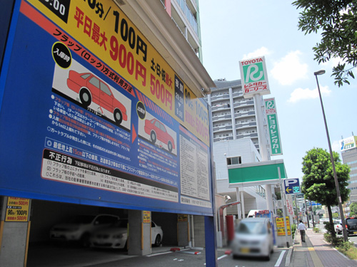 近隣のコインパーキングは少ないのですが、40分〜45分100円が相場です。