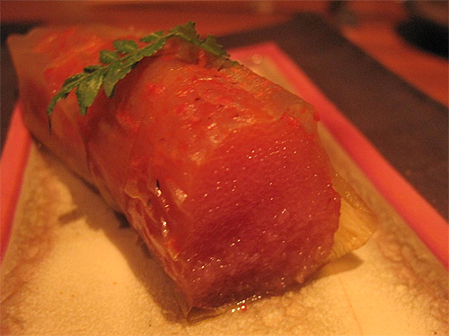 薄い昆布で巻かれた旨みたっぷりの明太子。