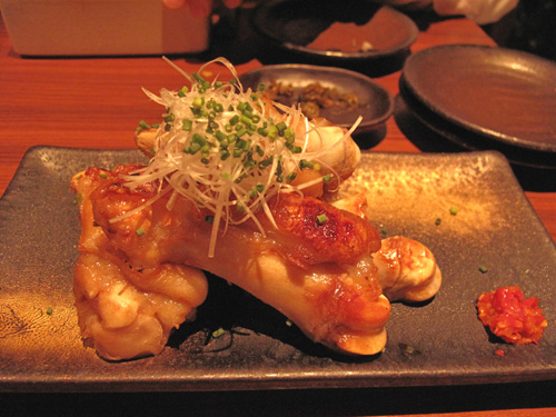 柔らかく下ごしらえした豚足を炙って、酢醤油をかけたもの。
