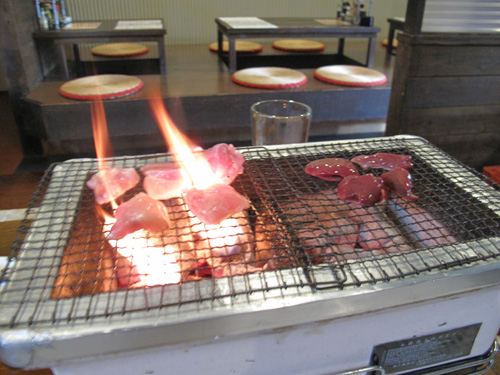 店長さんからアドバイスを頂きながら、七輪で自分で焼きます。