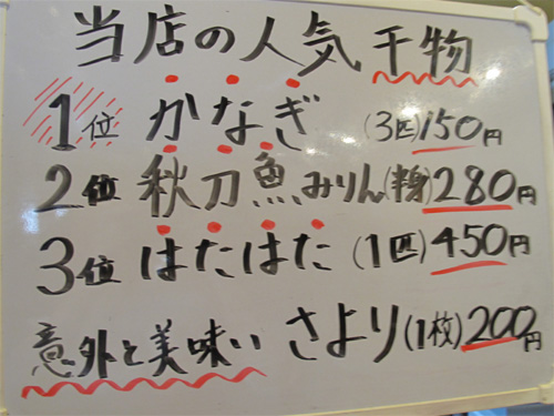 人気干物メニューランキング。