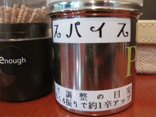 辛さが足りない場合は、卓上の辛味スパイスで調整できます。