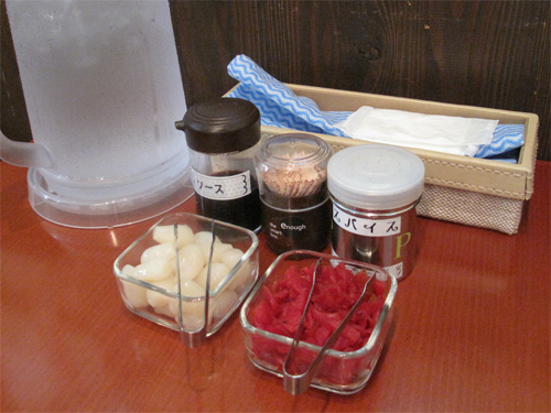 卓上には無料のらっきょうと福神漬。