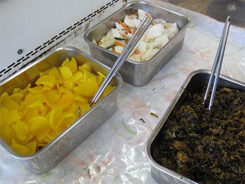 辛子高菜・たくあん・大根の酢漬けが取り放題。