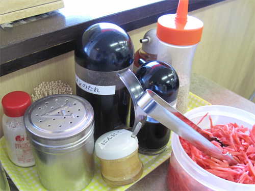 豚骨ラーメン屋さんに一般的な紅ショウガ・ゴマ・コショウ・ニンニクの他に