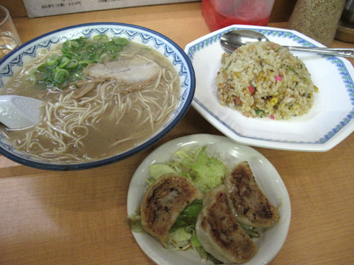 今回はラーメン+半炒飯+餃子3個で700円の餃子にしました。