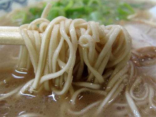 博多ラーメン発祥・元祖を謳うお店は細い平打ち麺が主流です。