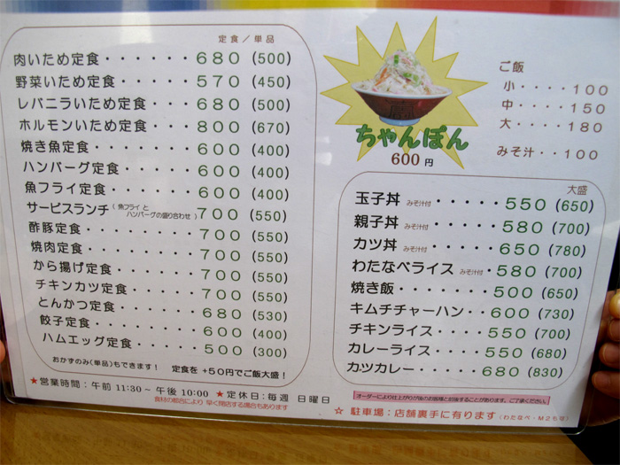麺メニューの他にもお馴染み定食がたくさんあります。