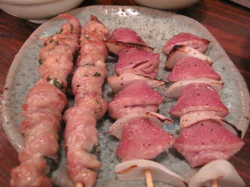 福岡の焼鳥屋さんのメニューの定番は豚バラ串で、鶏・豚・足や巻物、