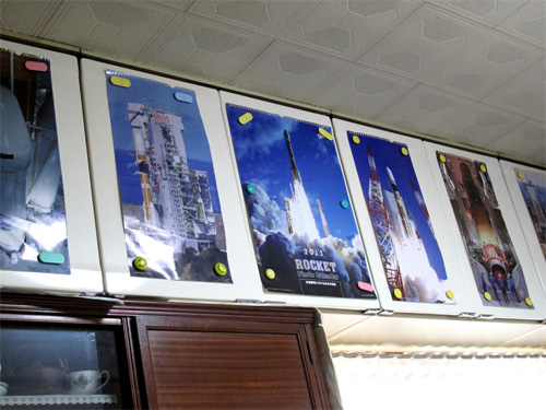 茶道をしてるのに、壁面にはロケットの写真がいっぱい!