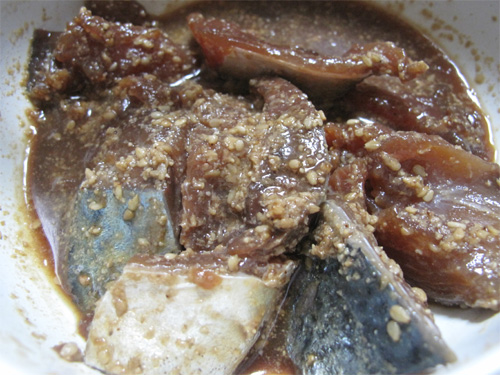 ホントはこんな風にゴマ醤油ダレに漬け込んだものが本式のゴマサバだと思います。
