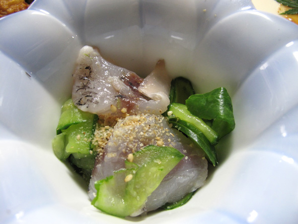 飛び魚とキュウリの酢の物。