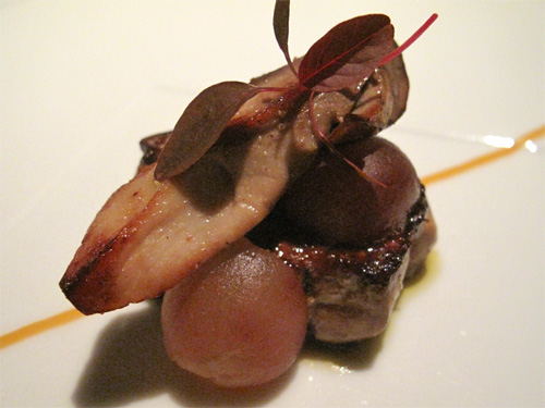 フォアグラのソテーとセップ茸と巨峰。