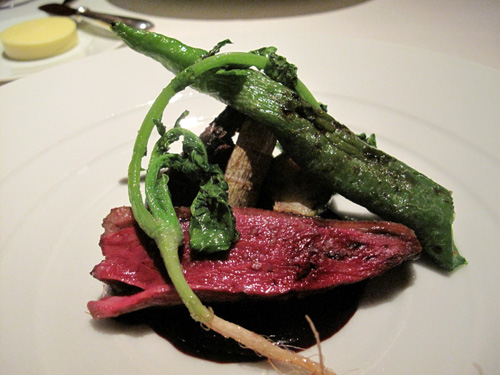お肉はソローニュ産青首鴨・カシスと黒トリュフのワインソース。