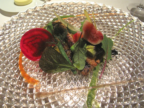 紫蘇の花と紅タデを散らしてあるシェフのセンスが面白い。