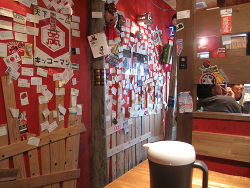 フツーのラーメン屋さんとも違う内装で、キッチュなラーメン居酒屋のイメージ。