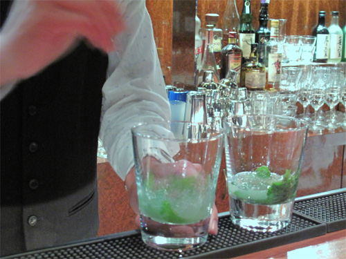 カウンターの向かいでは、バーテンダーさんが爽やかミントのモヒートを作っています。