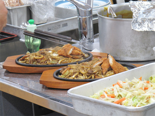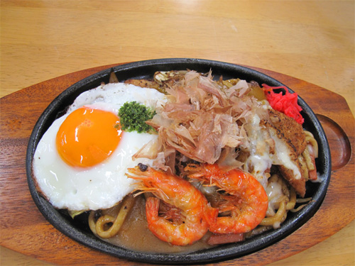 焼うどんと焼きカレーをコラボしたスパイシーな麺料理。