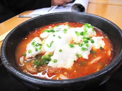 クリーミーな嬉野温泉湯豆腐と特製チゲスープが絶妙なコンビネーション。