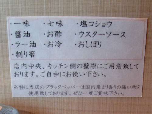 各種調味料は卓上にはなく、フロアの一角にまとめて置いてあるので、