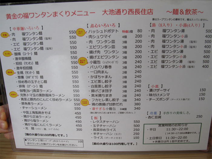 福岡のワンタン専門店ですが、麺や点心の種類が豊富で美味しいです。とてもオススメ♪