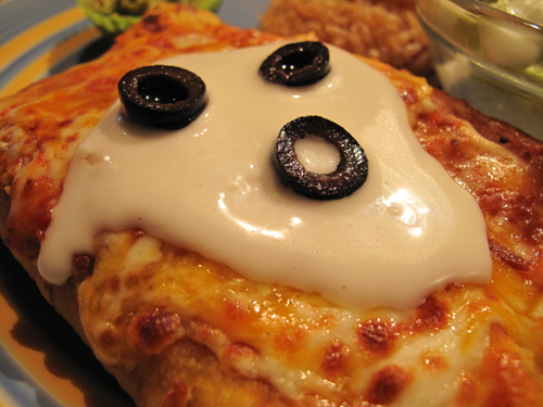 トルティーヤの中には、スパイシーな味付けのビーフとチキンの両方が入ってました。