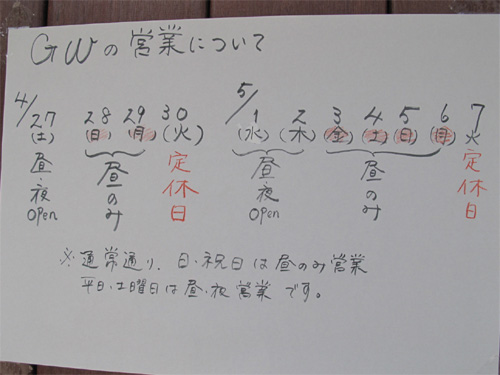 ちなみにゴールデンウィーク期間中の営業時間の案内です。