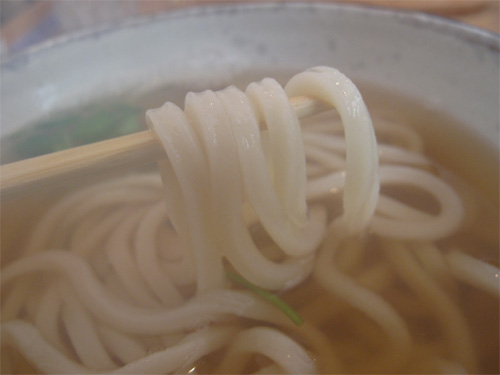 かけうどんには香りの柔らかい細ネギが添えられていて、