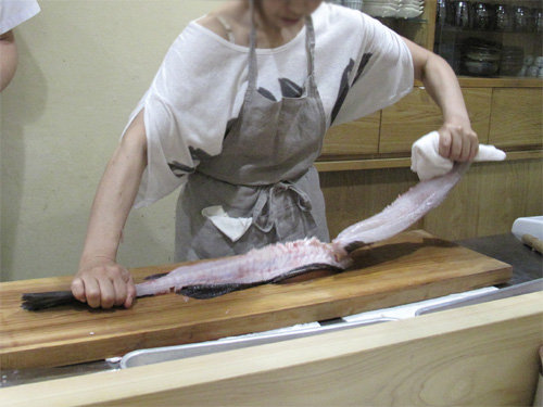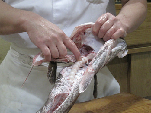 スズキの骨はとても硬いので、包丁使いには気をつけて。