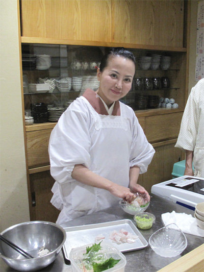 旬の味わいを楽しむスズキの洗いを作ります。