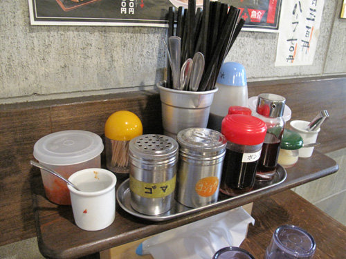 卓上の調味料とトッピング達。