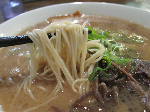 細麺に濃厚豚骨が絡まって美味しい♪