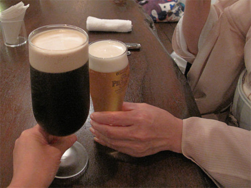 アルコールにそんなに強くない先輩はちび生、アタシはギネス生。