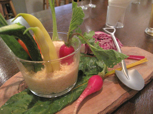 生野菜をチーズ味が効いたマッシュドポテトにつけて頂きます。