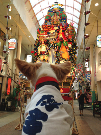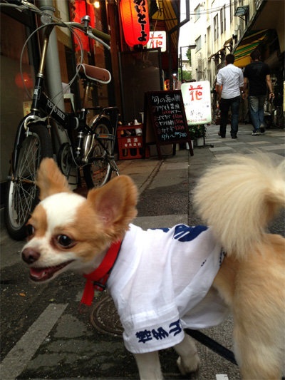 ちわわんアンディの博多祇園山笠水法被姿&中洲川端案内♪