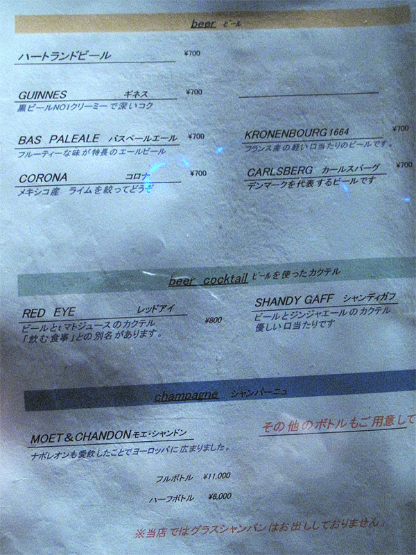 店内が暗かったので、今回はビールメニューだけ。