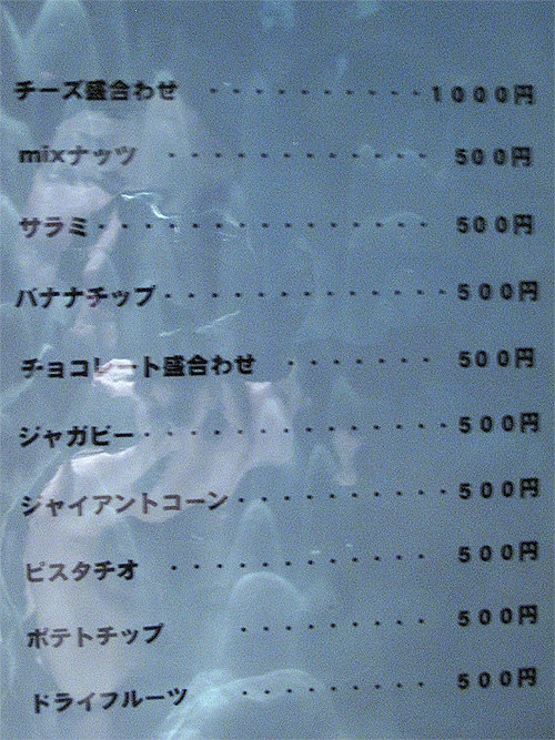お料理類はなく、ちょっとしたおつまみ程度ですので、