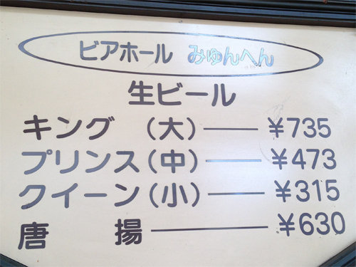 ビアホール・みゅんへんの名物は、なんと若鶏の唐揚げだそうです。