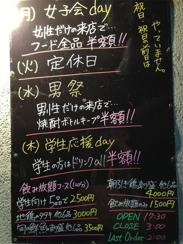 【営業】17:00〜翌3:00(L.O.翌2:00) ※要確認