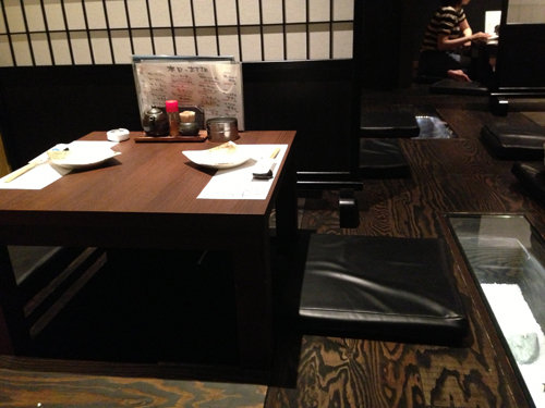 今回は掘り炬燵式のテーブル席を利用しました。