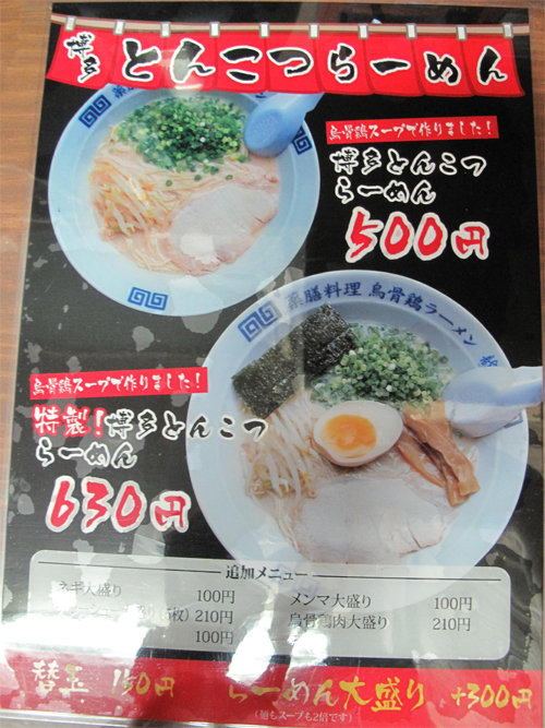 最近、新メニューで豚骨ラーメンも始められたみたいです。